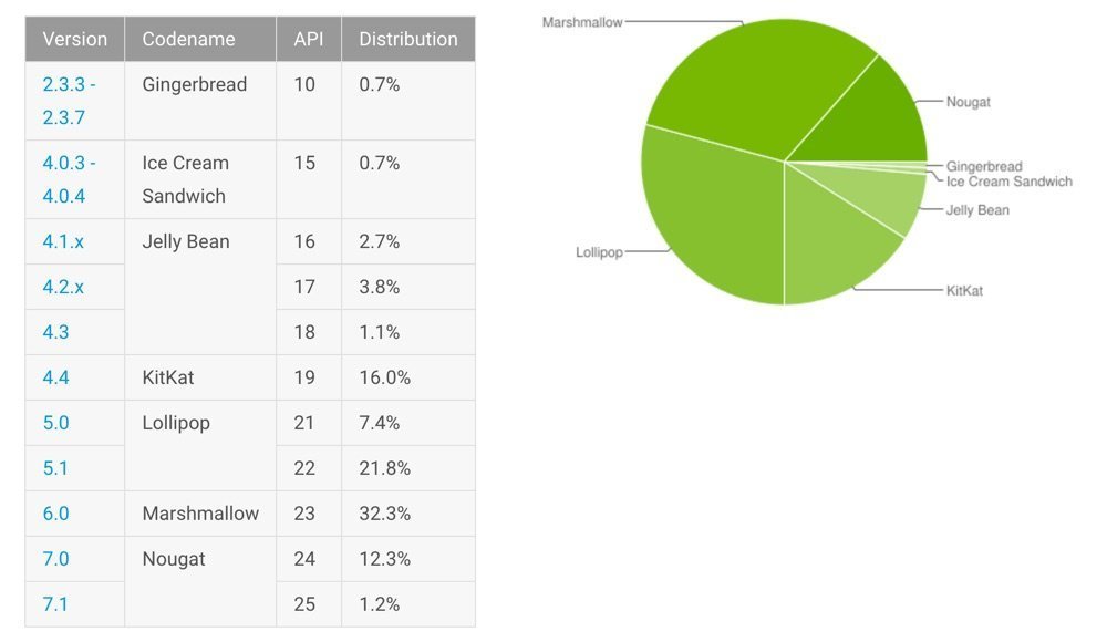 Google hat nicht nur den Android-Sicherheitspatch für August 2017 veröffentlicht, sondern präsentiert auch die neusten Zahlen zur Android-Verteilung. Weiterhin geht es bei der Verteilung der aktuellen Android-Versionen nur sehr schleppend voran, wie ein Blick auf die neuen Zahlen zeigt.