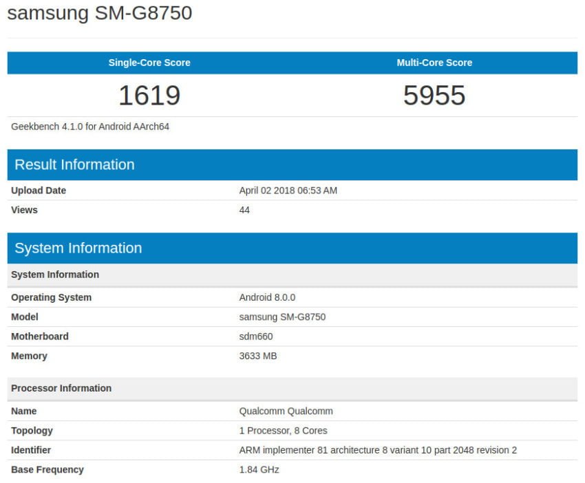 Arbeitet Samsung an einem Mini-Ableger des Galaxy S9? Zumindest sind jetzt erste Hinweise beim Benchmark-Tool Geekbench aufgetaucht, die auf ein Samsung Galaxy S9 mini schliessen lassen. Bei Geekbench wurde ein Modell mit der Bezeichnung SM-G8750 und dem mit Snapdragon 660-SoC, 4 GB RAM sowie Android 8.0 Oreo samt Samsung Experience-Oberfläche getestet.