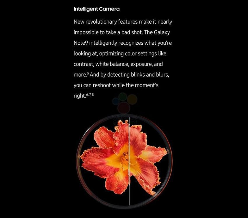 Auch zur Dual-Kamera, die jetzt wieder horizontal verbaut wird, gibt es neue Informationen. Die Dual-Kamera wird als „intelligente Kamera“ angepriesen. Sie soll Szenen erkennen und automatisch die besten Einstellungen dafür vornehmen. Das kennen wir bereits von anderen Herstellern wie Huawei. Weiterhin wird die Dual-Kamera mit variabler Blende (f/1.5 / f/2.4) auf dem Werbematerial bestätigt.