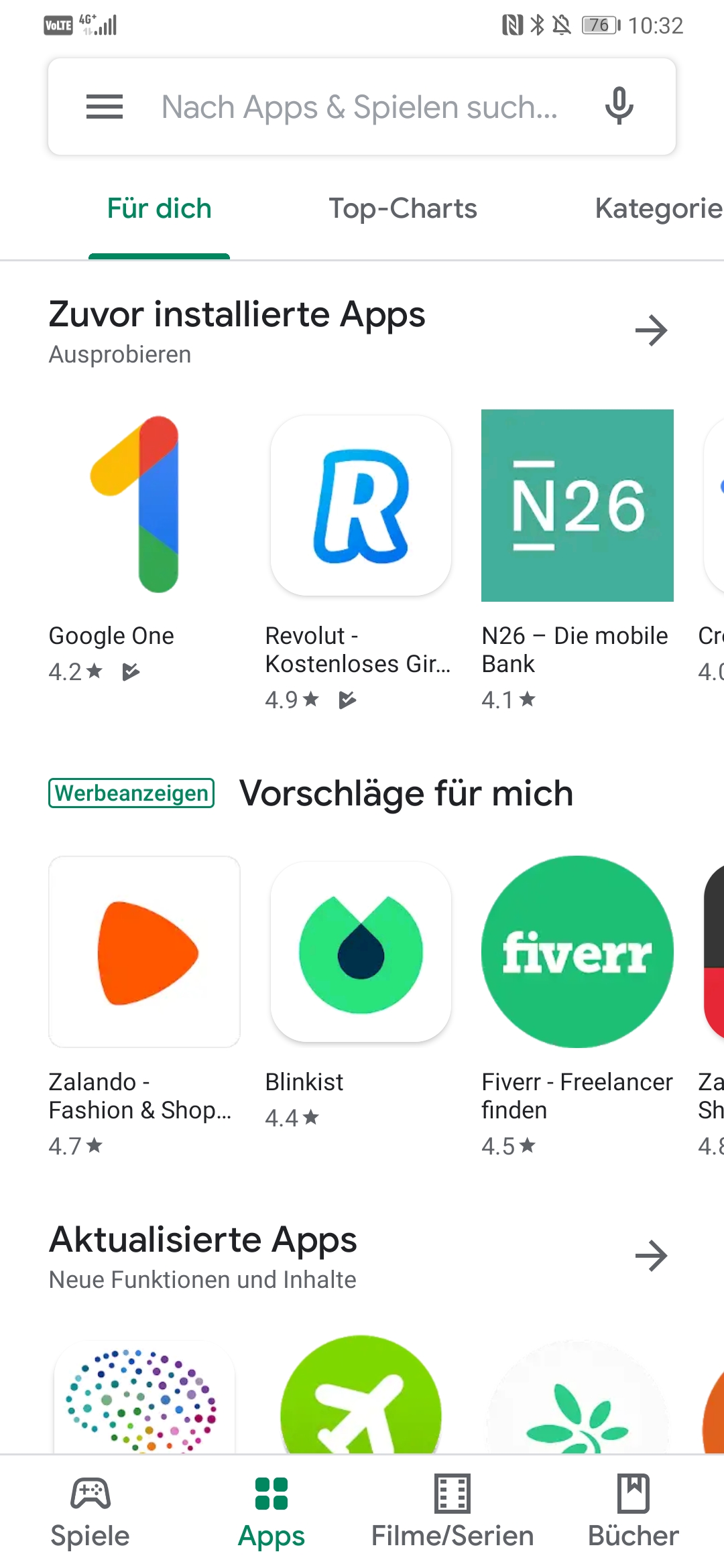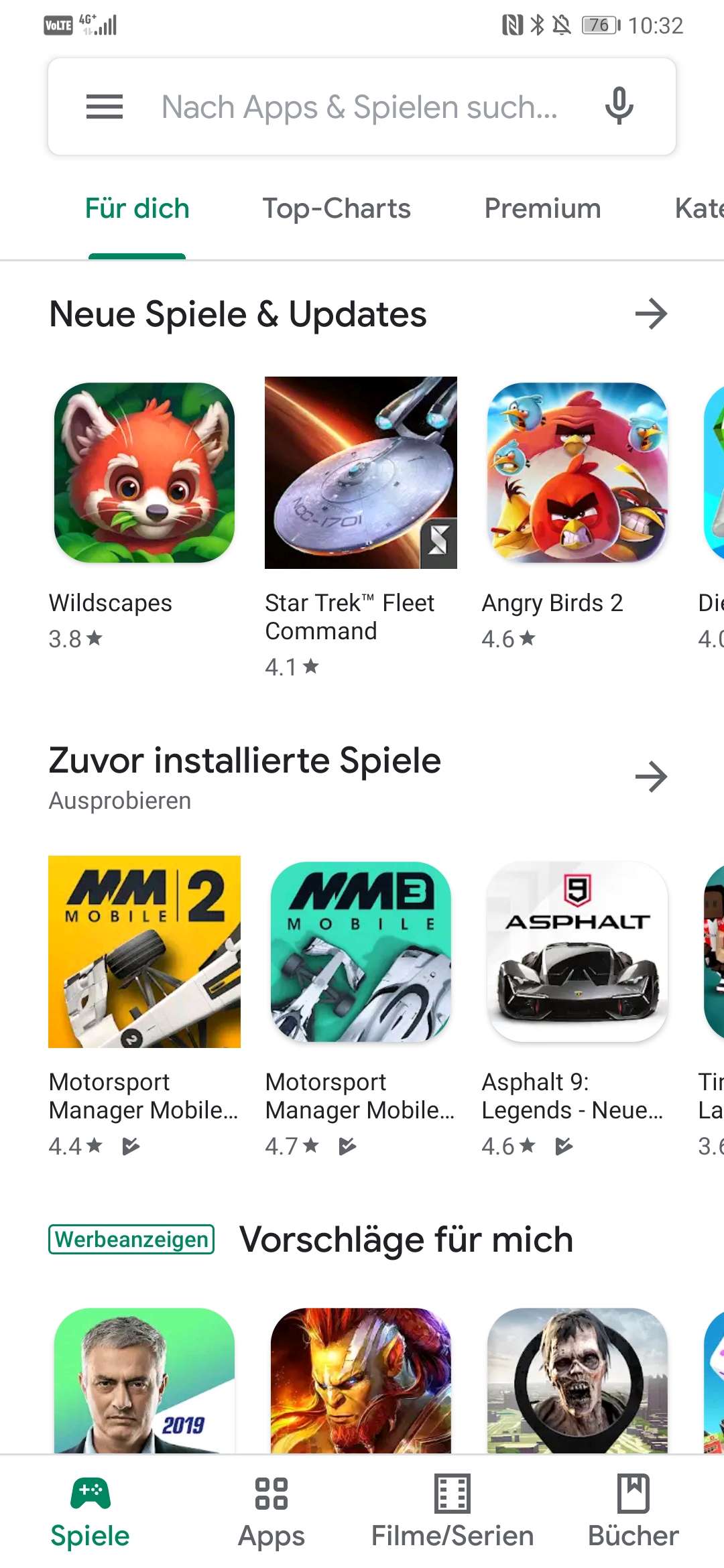 Und was bringt das neue Design mit? Nun, vor allem mehr Flächen in weiss. Dazu gibt es unterhalb eine neue Navigationsleiste, mit der man auf die verschiedenen Kategorien (Spiele, Apps, Filme/Serien und Bücher) zugreifen kann. Neue Funktionen habe ich bisher keine entdeckt.