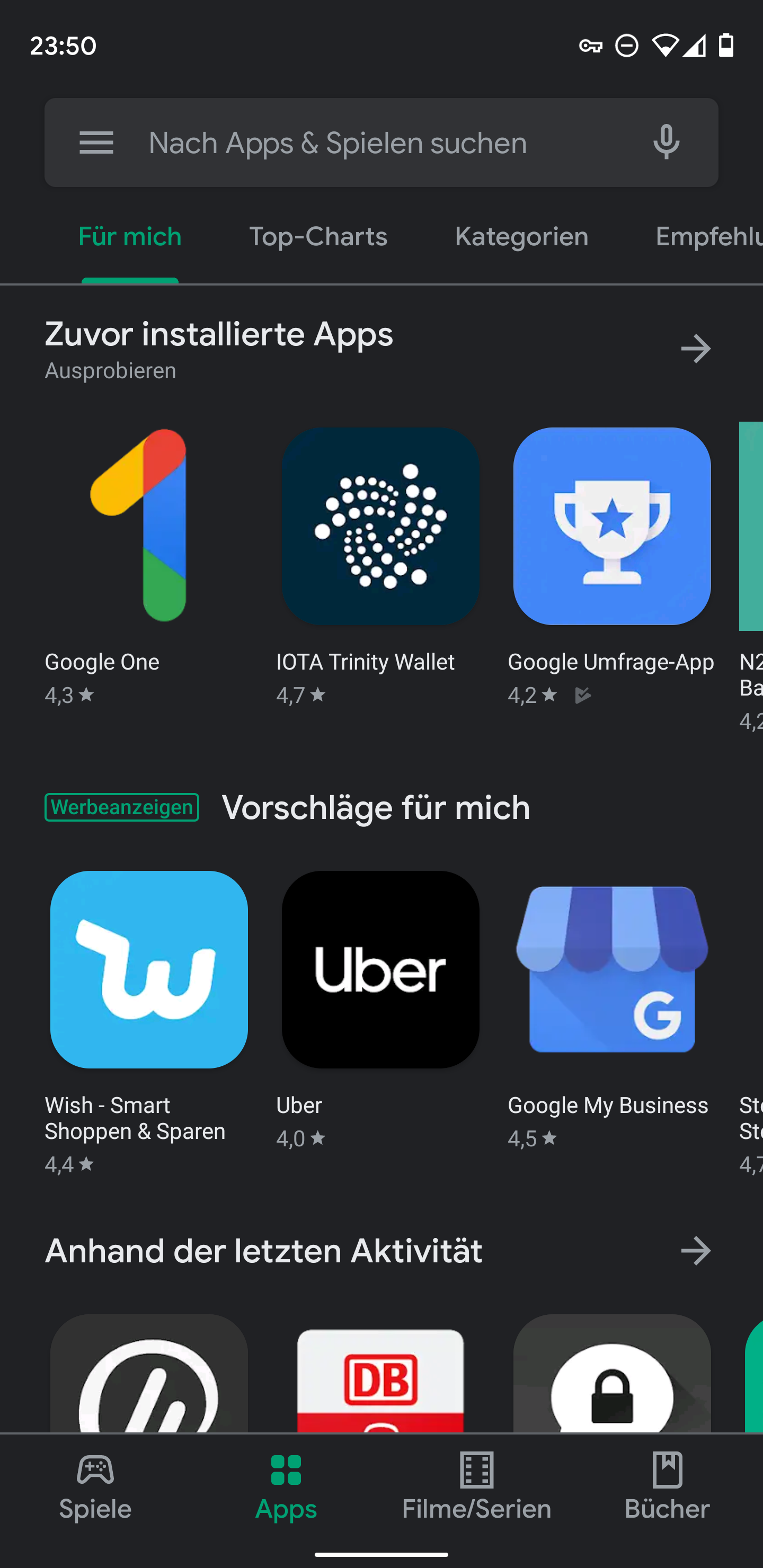 Auch kein Dark Mode erhalte ich im Google Play Store angezeigt, obwohl dieser scheinbar nun auch bei den ersten Nutzern verfügbar ist. Diese Nutzer haben die Version 16.7.21 des Google Play Stores installiert. Ist bei meinem Google Pixel 3 XL und Huawei P30 Pro ebenfalls der Fall, aber wie gesagt, bei mir ist nichts davon zu sehen. Die Aktivierung geschieht wieder serverseitig, in dem Fall.