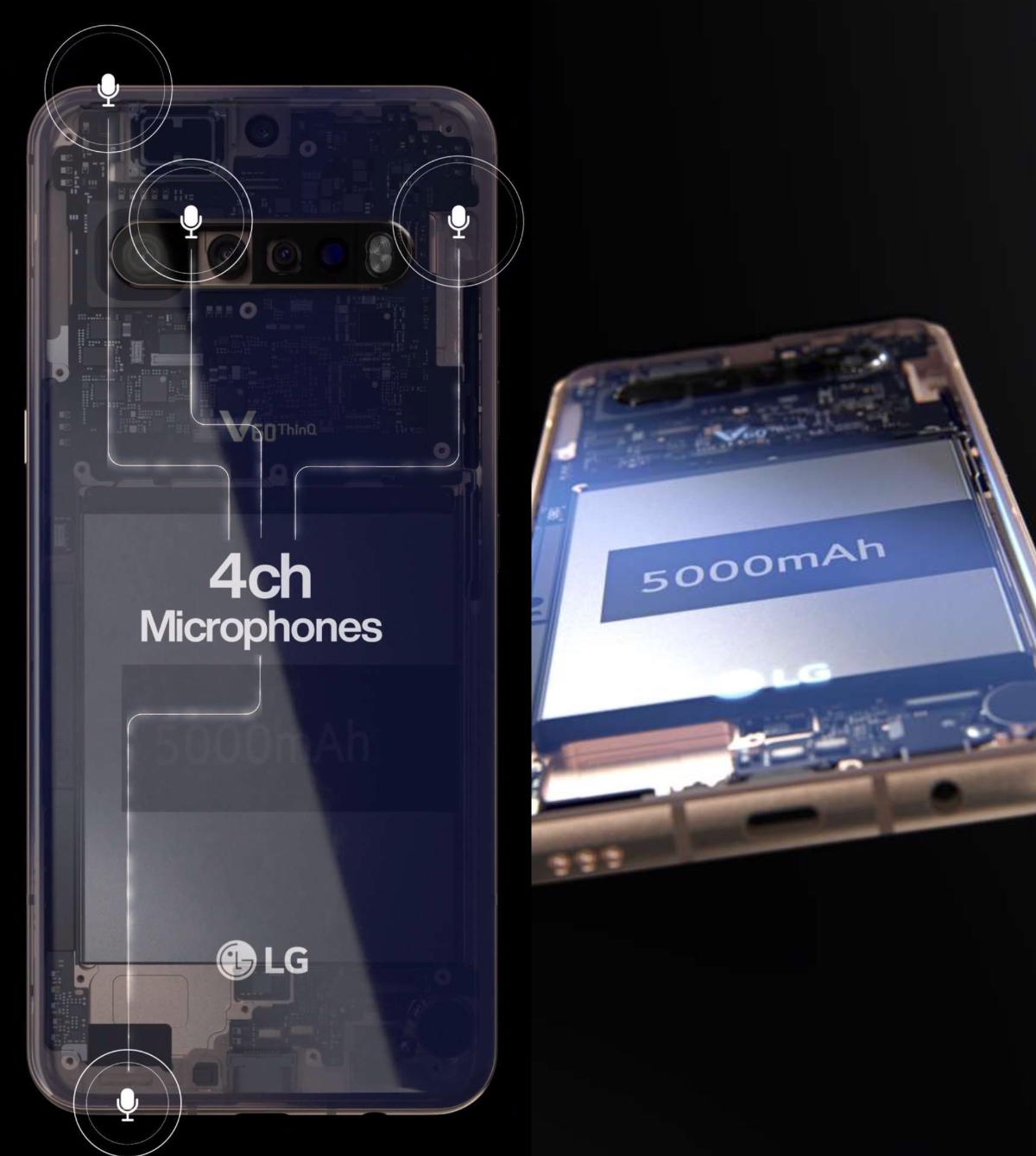 Das LG V60 ThinQ wird dem Promo-Material zufolge einen Akku mit einer Kapazität von 5000 mAh erhalten und eine Quad-Kamera auf der Rückseite sowie insgesamt vier Mikrofone verbaut haben. Mehr hat Evan Blass noch nicht veröffentlicht. Es würde mich jedoch nicht überraschen, wenn er in den nächsten Tagen weitere Bilder und Details zum LG V60 ThinQ veröffentlichten wird.