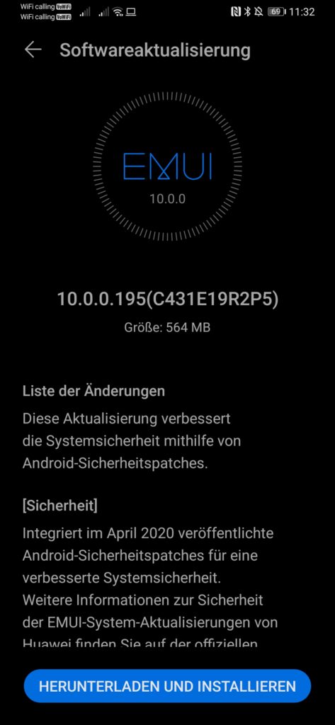Dem Changelog können wir entnehmen, dass wir es hier noch nicht mit dem grossen Update auf EMUI 10.1 zu tun haben. Die neue Softwareaktualisierung bringt den mehr oder weniger aktuellen Android-Sicherheitspatch vom April 2020 auf das Huawei P30 Pro. Weitere Neuerungen, Verbesserungen oder Optimierungen scheinen nicht dabei zu sein bzw. werden nicht im Changelog aufgeführt.