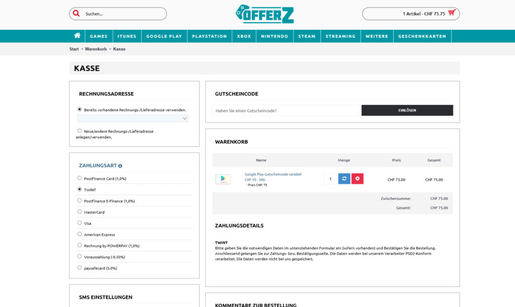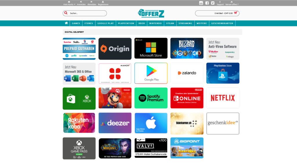 Offerz Gameshop (www.offerz.ch) ist der Schweizer Onlineshop wenn es um Gutscheine, Software und digitale Produkte zum herunterladen geht. Offerz.ch ist schon seit ende 2018 auf dem Markt und ist bei seinen Kunden sehr beliebt.