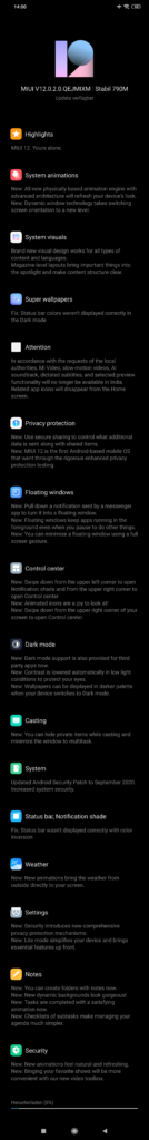 Was das Update auf MIUI 12 alles mit sich bringt, könnt ihr dem folgenden Screenshot (leider auf Englisch) entnehmen.
