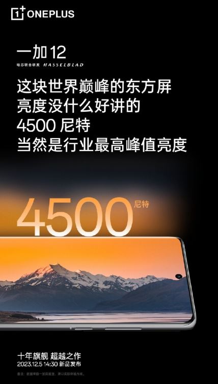 Weitere Teaser-Bilder verraten nun schon vorab, auf was wir uns beim 6,82 Zoll grossen Display freuen dürfen. Einen neuen Massstab wird das X1-LTPO-AMOLED-Panel von BOE bei der Helligkeit setzen. Unglaubliche 4500 Nits soll die Spitzenhelligkeit betragen, womit das OnePlus 12 alle anderen Mitbewerber locker in den Schatten stellt. Weiterhin gibt es eine dynamische Bildwiederholrate von 1 bis 120 Hz, was in erster Linie dem Akku zugutekommt, und eine Auflösung von 3168 x 1440 Pixel.
